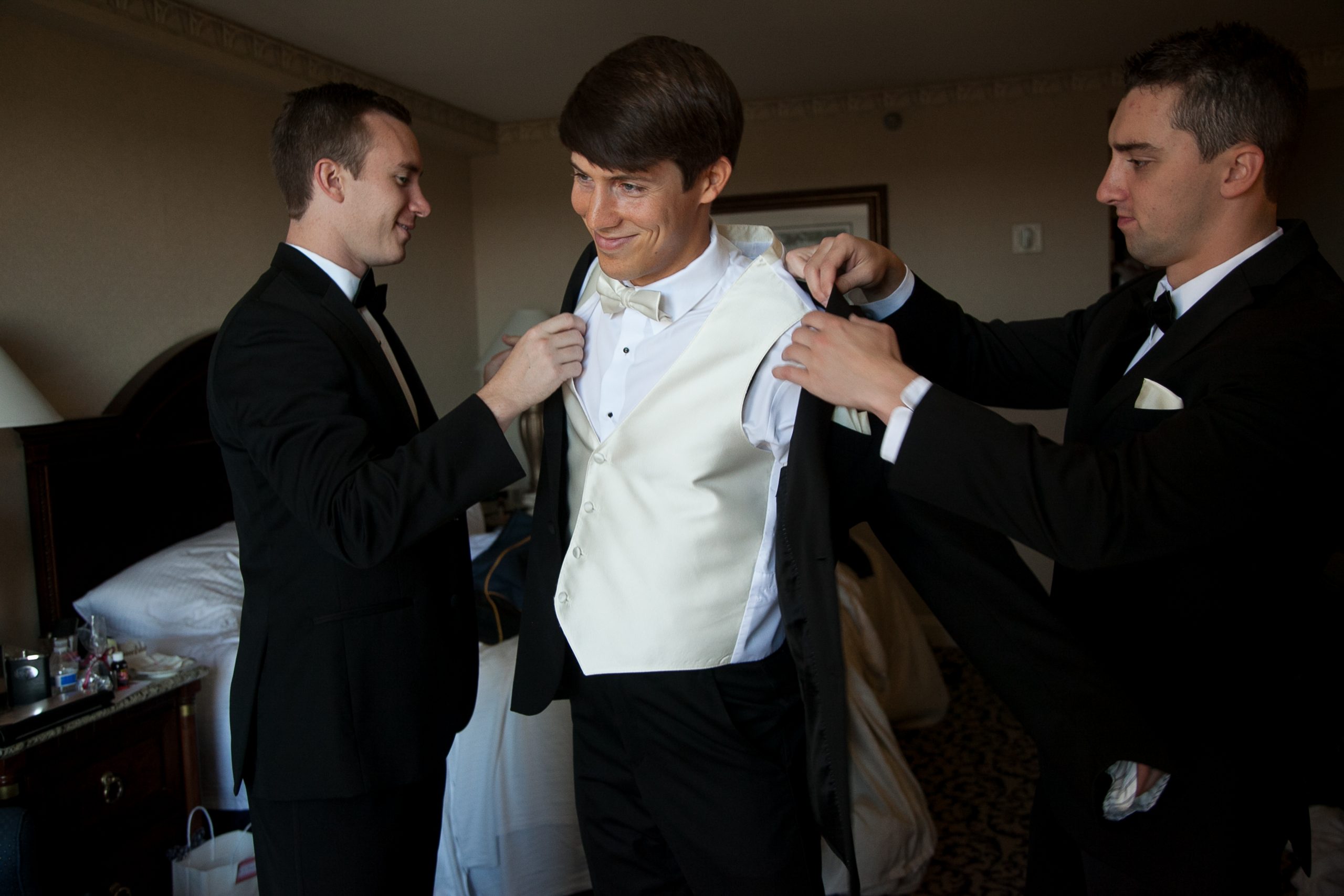 Groomsmen and the Groom getting ready Full size 2560 × 1707 pixels The Carlson’s Wedding in the Curtis Center Dan’s groomsmen put the finishing touches on his suit before the wedding Dan’s groomsmen put the finishing touches on his suit before the wedding Next image Leave a ReplyYou must be logged in to post a comment.